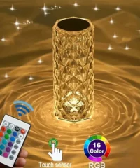 USB Rechargeable Crystal Rose Diamond Touch Lamp – 16 Colors with Remote Control
